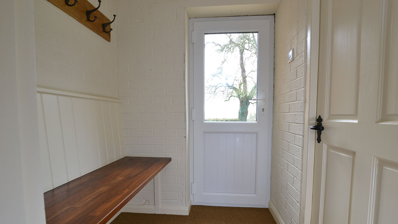 Boot Room: 1.5 x 1.6m Matted floor, bench seat, clothing pegs.
